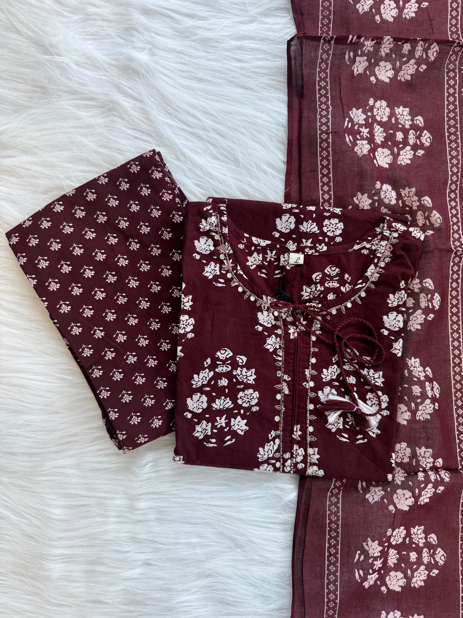 MAROON BLOSSOM KURTI SET-1284