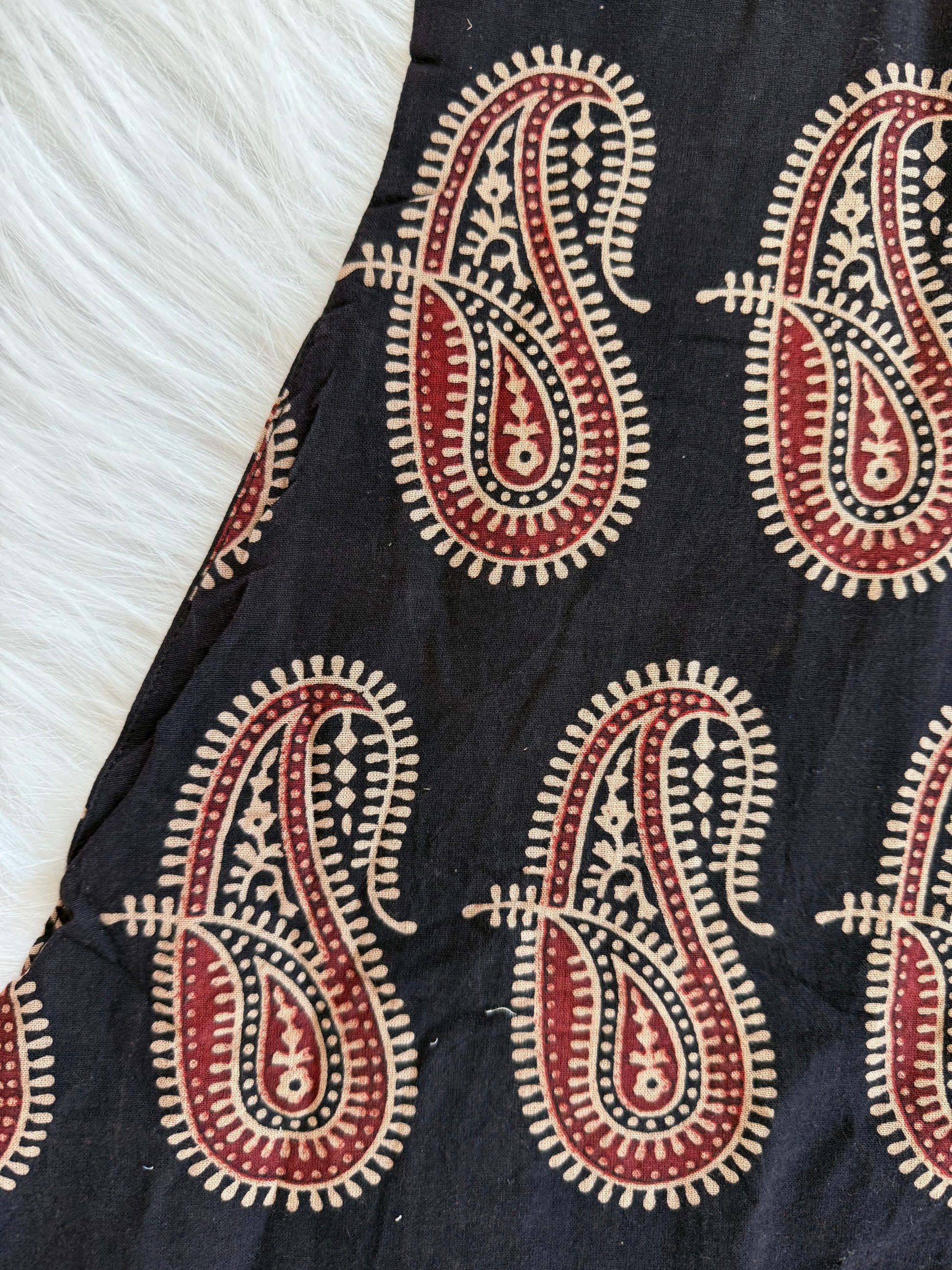 This Dress is crafted from comfortable cotton fabric, featuring an elegant traditional print that adds a touch of charm to your everyday style.