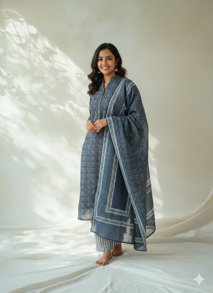 BLUE AJRAKH ETHNIC SUIT - 1504